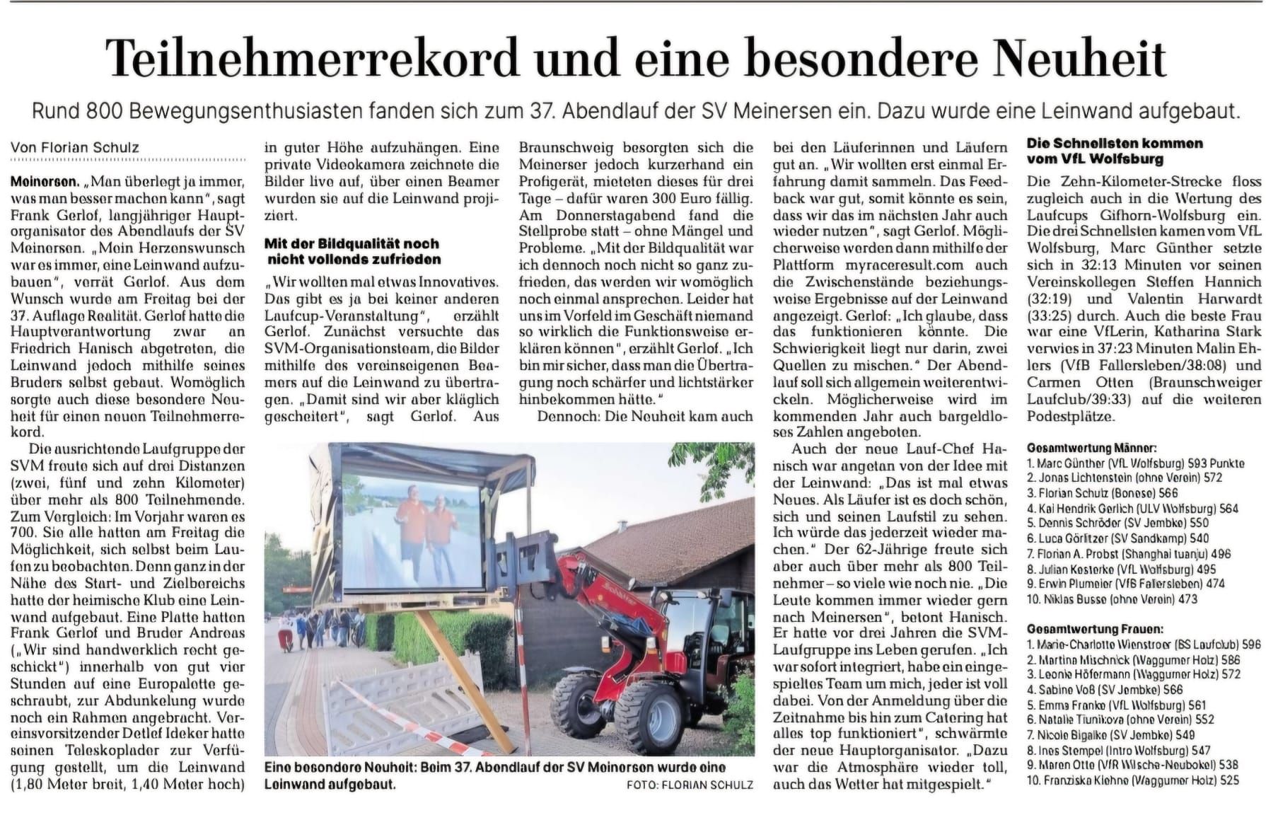 Nachfolgend findet du hier die Presseberichte der Allerzeitung und Wolfsburger Allgemein (Gifhorner Rundschau) vom 34. Abendlauf.